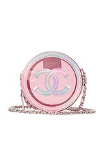 FWRD Renew Chanel PVC & Lambskin Filigree Round Clutch in Pink