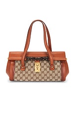 FWRD Renew Gucci Studded Nailhead Flat Messenger Bag in Beige