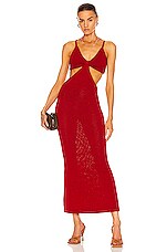 Johanna Ortiz Sendero De Astromelias Ankle Dress in Wine & Red
