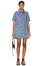 Ganni Vintage Washed Denim Mini Dress in Mid Blue Vintage