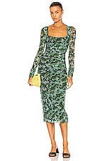 Ganni Printed Mesh Dress in Kelly Green