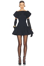 Matteau Shirred Peasant Mini Dress in Black