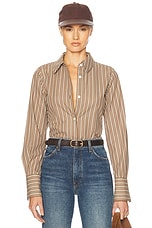 Helsa Pinstripe Poplin Fitted Shirt in Brown & Cream Stripe