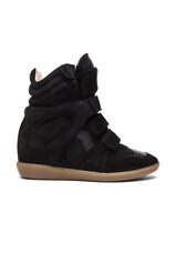 Isabel Marant Bekett Calfskin Velvet Leather Sneakers in Faded Black