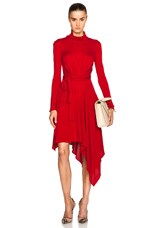 Norma Kamali Long Sleeve Turtleneck Side Drape Gown in Tiger Red