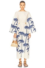 Johanna Ortiz Embroidered Journey Ankle Dress in Ecru & Blue