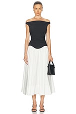 SIMKHAI Cersei Off Shoulder Midi Dress in White Black Multi