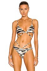 SIMKHAI Harlen Bikini Top in Zebra Landscape Caramel