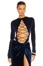 LaQuan Smith Lace Up Bodysuit in Navy