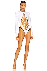 LaQuan Smith Lace Up Swimsuit in Black & White
