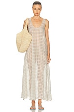 LESET Carmen Scoop Back Dress in Creme, Charcoal, & Sun Plaid