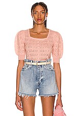 Miu Miu Logo Short Sleeve Sweater in Cipria