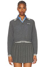 Miu Miu Long Sleeve Polo Sweater in Ardesia