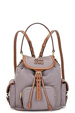 Miu Miu Canapa & Soft Calf Backpack in Alluminio & Brandy
