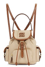 Miu Miu Canapa Soft Calf Mini Backpack in Corda & Brandy