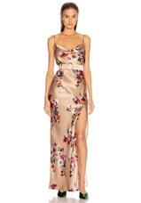 RABANNE Side Slit Gown in Salmon Pink