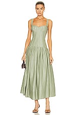 NICHOLAS Makenna Drop Waist Corset Midi Dress in Sage