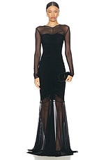 Norma Kamali Long Sleeve Diana Gown in Black & Black Mesh