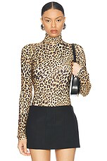 Norma Kamali Slim Fit Long Sleeve Turtleneck Top in Cheetah Patch