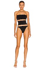Norma Kamali Bishop Nude Insert One Piece Swimsuit in Black & Nude Mesh