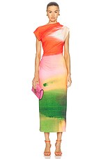 Oscar de la Renta Draped Midi Dress in Vermillion Multi