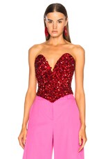 Oscar de la Renta Sequin Bustier Top in Red