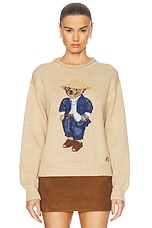 Polo Ralph Lauren Logo Cotton Crewneck Sweater in Tan Multi