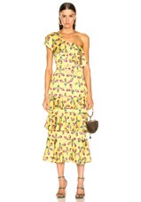 PatBO One Shoulder Tiered Ruffle Midi Dress in Bright Yellow
