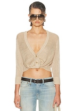 R13 3/4 Sleeve Twisted Front Cardigan in Light Khaki
