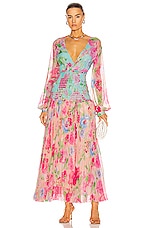 ROCOCO SAND Alora Pleated Maxi Dress in Multi