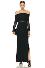 Eterne Long Sleeve Off-Shoulder Butter Rib Maxi Dress in Black