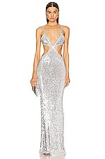 Casablanca Crochet Mirror Long Dress in Silver
