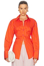 SIMONMILLER Loch Poplin Button Up Top in Hibiscus & Tangerine