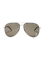 Saint Laurent Metal Aviator Sunglasses in Silver & Grey