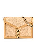 Saint Laurent Medium Cassandra Raffia Chain Bag in Naturel & Blush