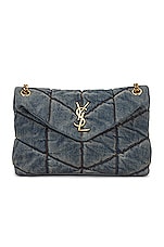 Saint Laurent Small Puffer Monogramme Chain Bag in Rodeo Blue & Cinnamon