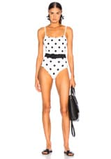 Solid & Striped Nina Belt Swimsuit in Small Cream & Black Dot