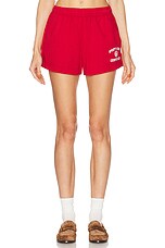 Sporty & Rich Varsity Crest Disco Short in Ruby