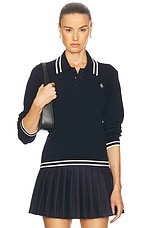 Sporty & Rich Cable Knit Polo Sweater in Navy & Cream