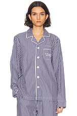 Sporty & Rich X Le Bristol Paris Faubourg Pajama Top in Navy & White