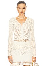 Enza Costa Linen Open Knit Cropped V Neck Cardigan in Off White