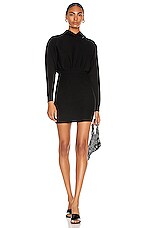 Norma Kamali Long Sleeve Turtleneck Fishtail Mini Dress in Black
