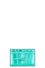 TOM FORD Metallic Stamped Croc Classic TF Card Holder in Lagoon