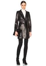 NOUR HAMMOUR Dakota Glamorous Leather Coat in Black Espresso