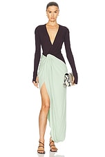 Victoria Beckham Long Sleeve Knot Gown in Ebony & Jade