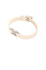 Valentino Garavani V Logo Signature Leather Bracelet in Light Ivory & Light Palladio Crystal