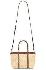 Valentino Garavani Crochet Raffia Rockstud Mini Tote Bag in Naturale & Selleria