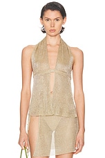 Ziah Metallic Rib Halter Top in Gold