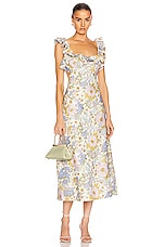 Zimmermann Super Eight Frilled Midi Dress in Blue Meadow