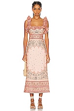 Zimmermann Matchmaker Frilled Midi Dress in Pink Bandana